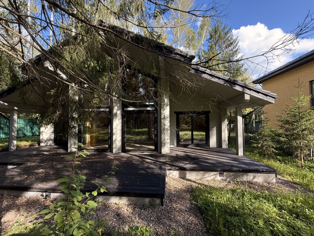Участок 15 соток граничит с лесом, терраса 15 м², место под баню/беседку.