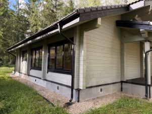 Экологичность и качество: Профилированный брус 190190 мм, утепление холлофайбером, фундамент на ЖБ-сваях, цементно-песчаная черепица BRAAS, окна Rehau Delight 70 мм.