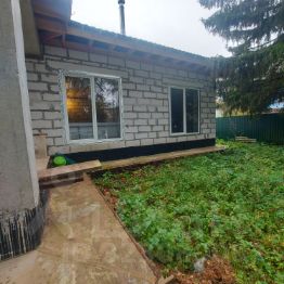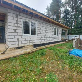 Одноэтажный дом удобной планировки 145,8м2 из газоблока Бонолит, толщина стен 40см и фундамента из ленты с внутренней засыпкой + утепление пеноплекс 5 см , сверху залитая бетонная плита. Строили для себя с душой и добротно .