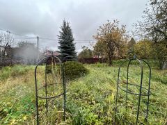 Насаждения: 3 яблони (Антоновка, Белый налив, Мельба), 2 сливы, черешня, смородина черная 7 кустов, крыжовник, малина вдоль забора. Все плодоносят.
