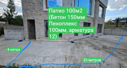 Вокруг дома выполнены бетонные архитектурные формы патио 100 м2, лестницы 2шт , парковки на 5 машина мест, входная группа.