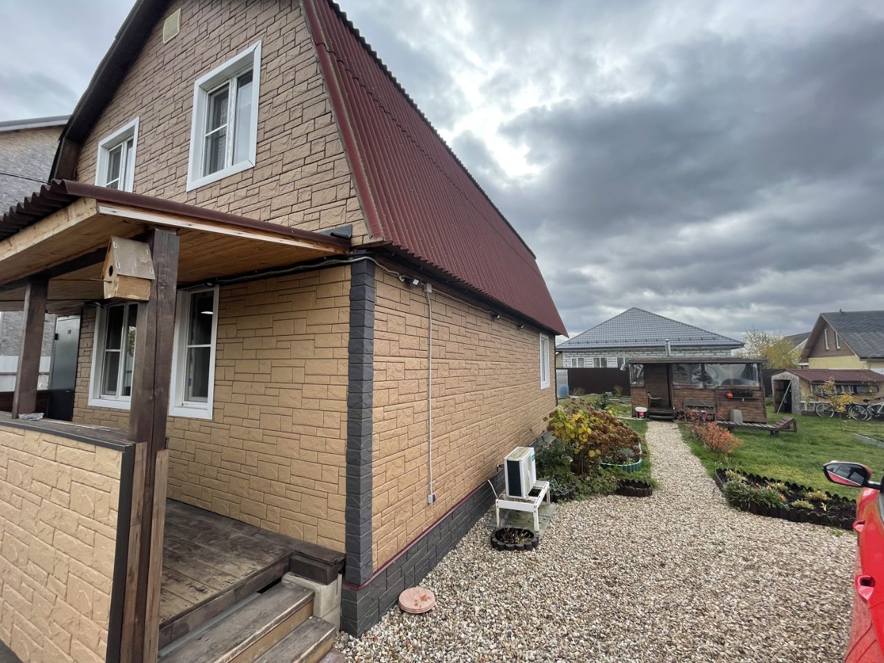 Продается каркасный 2-х этажный дом для круглогодичного проживания, 90м2, утеплен, обшит сайдингом, год постройки 2018, на 1-м этаже прихожая, кладовка, кухня гостинная, СУ, на 2-м этаже 3 комнаты, гардеробная. 2 кондиционера (сплит система), котел можно топить как брикетами, так и электричеством. В доме остается вся мебель и техника, кроме 1 телевизора и пару диванов, заезжай и живи! Вода-скважина(70 метров), также на участке есть колодец-13колец. Участок 7 соток, квадратной формы, ровный, сухой. На участке баня-бочка, беседка с мангальной зоной, парковочное место, теплица. Огорожен с 4-х сторон, откатный ворота, круглогодичный подьезд. От остановки общественного транспорта 15-20 минут пешком, автобусы до метро Котельники и города Бронницы. Один взрослый собственник, полная стоимость в договоре. Подходит под ипотеку, Есть торг.