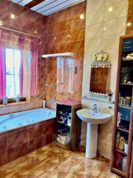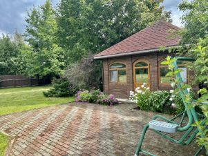 В гостевом доме гостинная с кухней, комната отдыха с большим кожанным диваном, дровяная печь - камин, сауна, большая купель с подогревом воды 2,2 м х 1,6 м с противотоком и фарсунками, санузел.