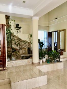 В основном доме второй свет, высота потолка в гостинной 6 метров, есть зимний сад с водопадом в гостинной.