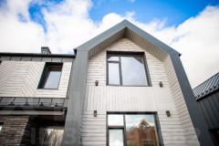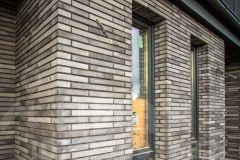 • Современный фасад с подсветкой, отделкой планкеном из лиственницы и клинкерным кирпичом