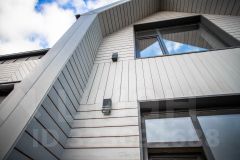 • Современный фасад с подсветкой, отделкой планкеном из лиственницы и клинкерным кирпичом