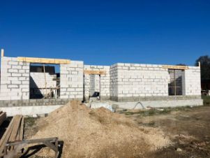 На участке в 2024 году построен 1 этаж дома из газобетонных блоков. (подняли до крыши)