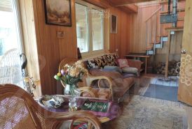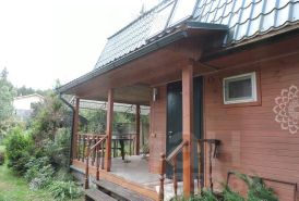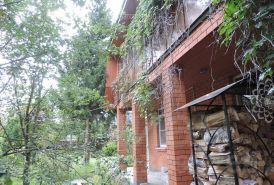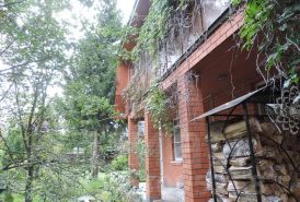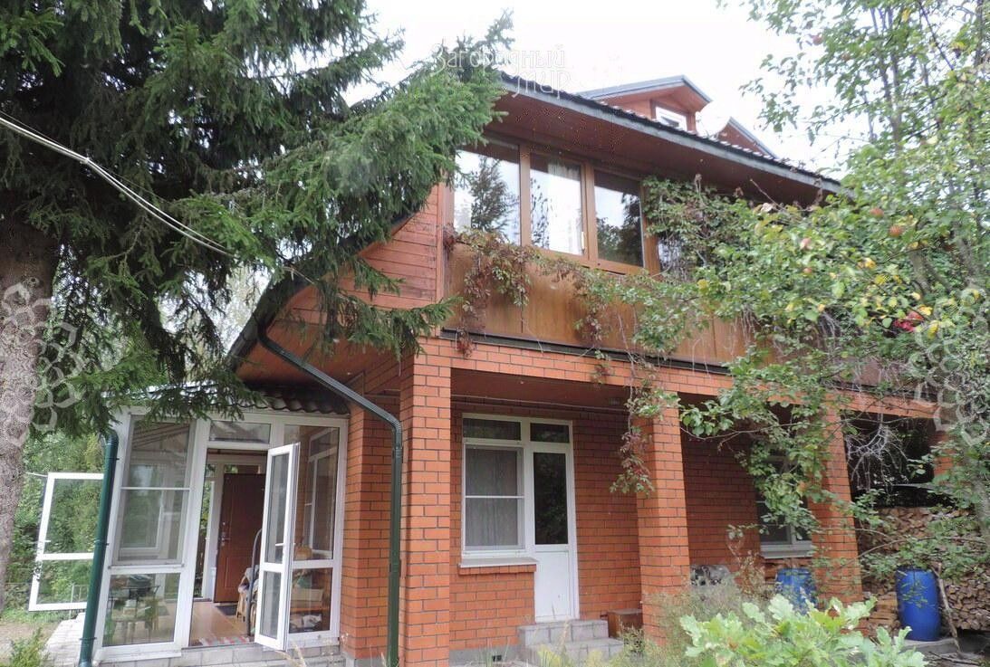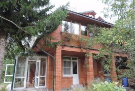 Двухэтажный дом из пено-бетонных блоков, площадью 100 кв.м, внешне отделанный декоративным кирпичом в закрытом СНТ в окружении леса.