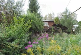 Участок. 12 соток, засажен красивым садом с плодовыми и декоративными деревьями и кустарниками, много хвойников и цветов.