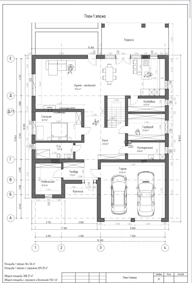 Общая площадь дома: 376,1 кв. мЭтажность: 2 этажа