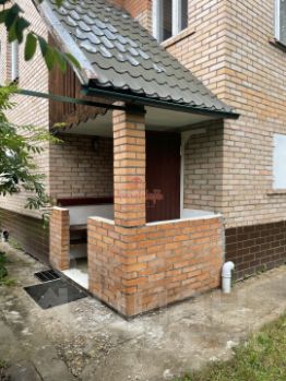 Дом кирпичный, крыша - металлочерепица, имеет три этажа: