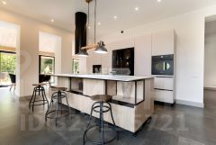 Дом выполнен в стиле "тихой роскоши" и сочетает в себе только натуральные материалы: дерево, камень, бетон, стекло. Планировка удобна и продумана до мелочей, в интерьере царят уют и минимализм.