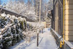 Ограда участка из бетона и клинкерного кирпича, подчеркивающая солидность владения. Готовая парковочная зона на 4 автомобиля и современный отапливаемый гараж на 2 места с удобным выходом в дом и возможностью зарядки электромобилей. Предусмотрены коммуникации и площадка под баню и СПА с видом на лес.