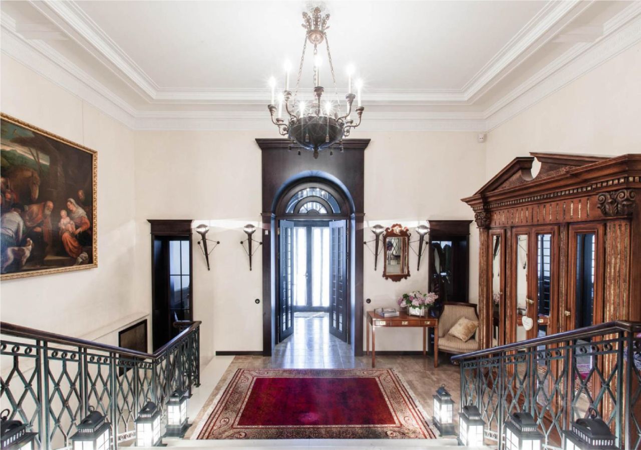 Архитектура, созданная для эстетов, живёт вне времени. Четырехуровневый особняк в неоклассическом стиле по проекту итальянского архитектора — редкий пример того, как европейская школа и русская традиция усадебной жизни сплетаются в единое целое. Фрески на потолках, мебель по индивидуальному заказу, продуманная анфилада парадных залов — здесь каждая деталь свидетельствует о безупречном вкусе владельца.