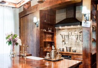 Первый — прихожая с гардеробной, холл, гостевая спальня, оранжерея, кабинет, каминный зал, гостиная, столовая, кухня с выходом на участок.