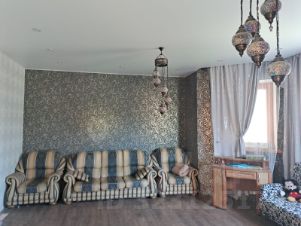 Баня отдельно стоящая, с предбанником и комнатой отдыха со спальными местами. В бане установлена душевая кабина, стиральная машинка и есть сан узел. Выход из бане на крытую веранду с раздвижными пластиковыми окнами.