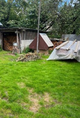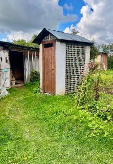 На территории — летний домик под яблонями (2 комнаты + кухня, всё необходимое оборудовано)