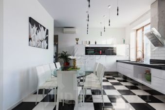 При строительстве коттеджа использовались качественные строительные материалы, в отделке дома применены натуральное дерево, керамогранит, потолки обшиты микротканью - все материалы европейского производства. Кухня мебель и техника полностью изготовлено Miele. ТВ и звук - представлены лидером данной отрасли Bang&Olufsen. Сложные инженерные решения использовались для установки кухни Miele и камина (высота - 6м) с эффектом "парения". Шторы итальянский шелк, выполнены на заказ. Картины - сусальное золото и серебро.