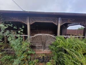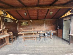 На участке предусмотрена зона барбекю с расположенной рядом небольшой беседкой, а также построена большая деревянная беседка с деревянным столом и скамейками на большую компанию.