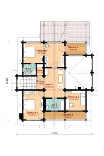 На втором этаже: три спальни, холл, гардеробная, два сан.узла, два балкона