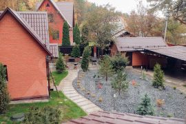 На участке расположены 2-х эт дом - баня, капитальный гараж, парковка на 3 авто с навесом.
