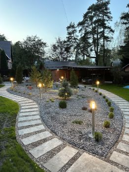 Мангальная зона, дорогой ландшафтный дизайн, освещение.