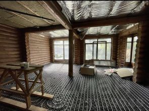 В качестве межвенцового уплотнителя между бревнами использована джутовая лента.