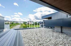 . Фасад облицован натуральным камнем и деревом. В доме предусмотрено 5 спален с санузлами, просторная гостиная с панорамными видами, большие террасы и бассейн. Благодаря панорамным окнам в каждой комнате и высоким потолкам внутреннее пространство наполняется естественным светом. Дом расположен в пешей доступности от большого парка с озером. Предлагается в состоянии под отделку. Межкомнатные перегородки возведены.