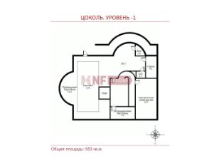 Цоколь: бассейн, душ, сауна, с/у, тех.помещения;