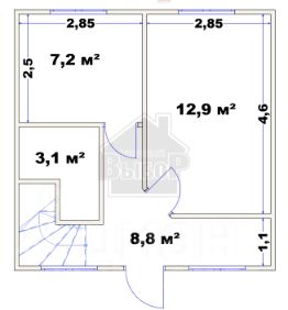 На 2-м этаже прихожая зона 7,5 кв. м. и большая комната 22 кв. м.