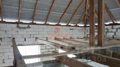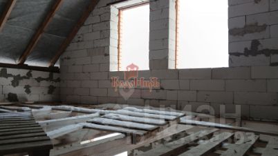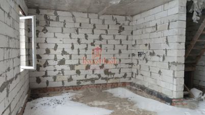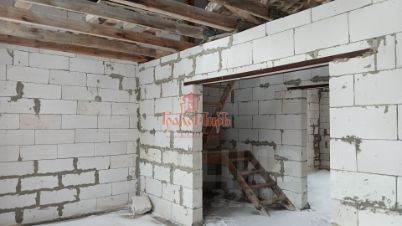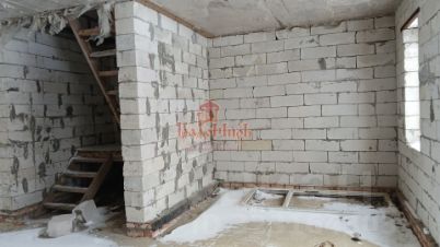 Стены - газосиликатные блоки, снаружи - кирпич. Толщина стен - 40 см. Крыша - металлочерепица. Перекрытия - бетон (между 1-м и 2-м этажами), деревянные (между 2-м и 3-м этажами). Окна ПВХ (2-й и 3-й этажи не застеклены). Высота потолков - 3м.