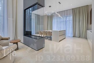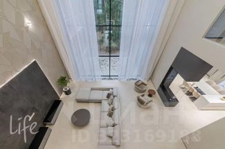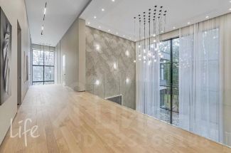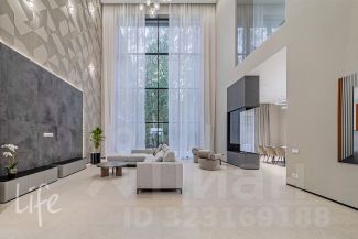 Дизайнерский интерьер выполнен в современном стиле, в мягких, светлых тонах. Со вкусом подобрана мебель и аксессуары. Использованы современные световые решения. Гостиная с вторым светом, высота потолков около девяти метров, ее украшает двухсторонний камин.