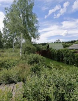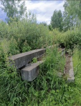 Продается участок прямоугольной формы. На участке имеются молодые плодовые деревья. Также на участке лежат блоки ФБС и усиленные сваи, приобретенные для фундамента дома. Электричество и газ проходят по границе участка. В минуте ходьбы от участка расположен пруд.