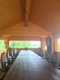 - 2 крытые беседки (маленькая и большая с длинным деревянным столом и стульями для большой компании);