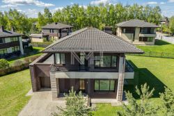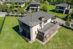 Внутри отделка выполнена в стиле европейского минимализма. Потолки разноуровневые, с закладами для штор. В доме установлена кухня с необходимой бытовой техникой, все с/у укомплектованы импортной сантехникой.