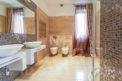 панорамные окна, высокие потолки, большое количество балконов, большая терраса, частично меблирован, кухня под ключ, все санузлы укомплектованы, гараж в доме.