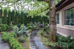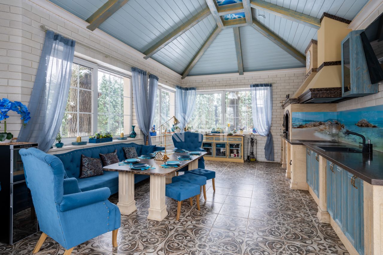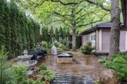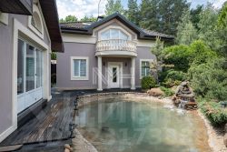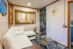 Участок 21 сотка с ландшафтным дизайном, по периметру высажены туи. Имеется свой выход в лес. На участке расположены: готовый к проживанию гостевой дом (1 этаж: кухня-столовая, с/у; 2 этаж: спальня и с/у), полностью оборудованная баня, всесезонная беседка с зоной барбекю, искусственный пруд с водопадом, поляна с очагом. На въездной группе крытая парковка на 5 автомобилей и теплый гараж для техники.