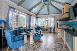 Из особенностей: В основном доме зона СПА с бассейном, спортзал, второй свет, камин, оборудован кинотеатр, зимний сад. На участке гостевой дом (дом для персонала) под ключ, баня, всесезонная беседка с зоной барбекю, гараж для техники. Выполнен ландшафтный дизайн.