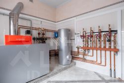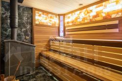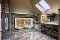 Внутри выполнена предчистовая отделка: полы — испанский мрамор и инженерная доска (дуб); подоконники — испанский мрамор; стены оштукатурены; выполнены разводка электричества и коммуникации, все с/у укомплектованы импортной сантехникой. Котельная под ключ котел Viessmann(100 кВт), бойлер на 300 л. Теплые полы первый этаж и все с/у.