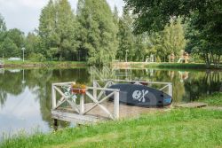 2 хозяйственных ангара для хранения техники и оборудования, 2 зарыбленных пруда с оборудованным пляжем, прогулочными дорожками и зонами отдыха, мини-ферма.