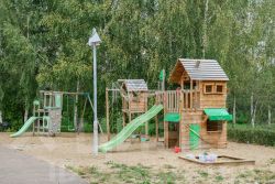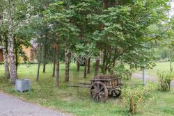 На участке проложена асфальтовая дорога к объектам инфраструктуры, на территории расположены: 10 домов от 75 до 200 кв.м для круглогодичной аренды, отдельностоящее здание бани, здание администрации, конюшня на 30 лошадей,