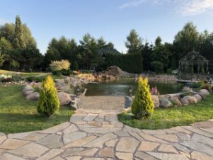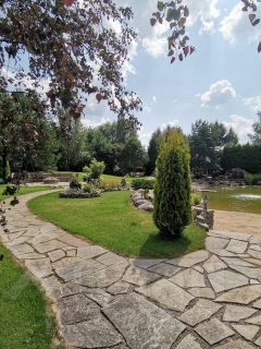 Роскошная территория с двумя домами, прудом и идеальным ландшафтным дизайном. Полный комплекс инженерных коммуникаций. Собственность более 5 лет.