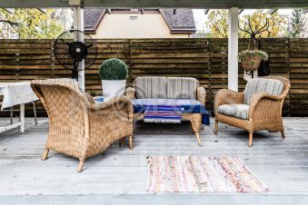 1 этаж: прихожая, холл, кухня, столовая, гостиная с дровяным камином, теплая застекленная терраса, санузел, гараж.
