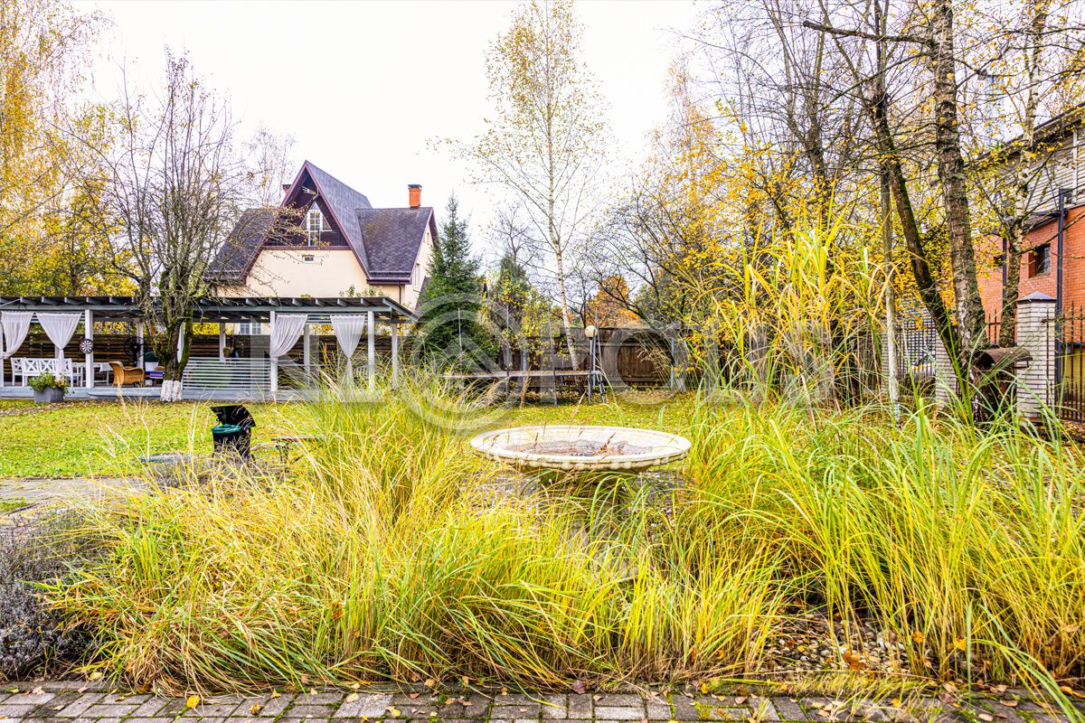 Ровный участок с ландшафтным дизайном: газон, дренаж, уличное освещение, система автоматического полива, дорожки вымощены брусчаткой.