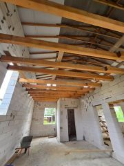 Продаётся двухэтажный дом из пеноблоков, построенный в 2024 году, не зарегистрирован. Общая площадь 200 кв. М., что позволяет обустроить просторные жилые помещения. Фундамент — бетонная плита. Участок ровный, прямоугольной (почти квадратной) формы, угловой, расположен в глубине коттеджного поселка, огорожен забором из металлического профлиста. Имеется скважина для водоснабжения. Газ в поселке есть. Коттеджный поселок закрытый, на въезде Кпп.