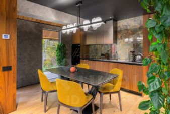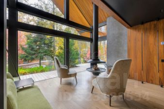 Лот 102979. Эксклюзив Vesco Realty. Коттеджный поселок "Новолеоново" Уютный фахверк для постоянного проживания в скандинавском стиле с большим панорамным остеклением на лесном благоустроенном участке 20 соток в 50 км от МКАД по Новорижскому шоссе (30 минут в пути) в коттеджном поселке Новолеоново. Фишка проекта — полностью лесной участок на рельефе! Перепад высот достигает 5 м. На участке расположен основной дом 147 кв.м, банный комплекс 150 кв.м из карельской сосны кело и котельная-мастерская 33 кв.м, которую можно трансформировать в гостевой дом или помещение для обслуживающего персонала. В доме: 3 спальни, гостиная со вторым светом, лаундж зона с островным камином, кухня-столовая, кабинет, постирочная. В банном комплексе: русская печь с изразцами, на террасе - горячая встроенная фурако и холодная купель, столовая-гостиная, 12-футовый бильярд, гостевая спальня и шикарная парная комната с панорамным окном и живописным видом на участок. ПЛАНИРОВКА Основной дом. 1 этаж: прихожая (4), кухня-столовая (13,2), гостиная (29,4), гостевой с/у (3), спальня (16,1) с гардеробной (4,2) и ванной комнатой (5,5), постирочная (7,5), терраса. 2 этаж: детская (20), кладовая, гостевая спальня (13,4), с/у (3,9), кабинет (14,5), коридор (3,8), второй свет. Банный комплекс. Комната отдыха (74,3), спальня (6,8), сауна (11,1), душевая (7,5), с/у (1,3), терраса (39,8), крыльцо (1,3). УЧАСТОК Лесной благоустроенный участок 20 соток со множеством столетних деревьев и уникальным ландшафтом, вдохновленным природой Карелии. Создан благодаря многочисленным елям, соснам, кустарникам и огромным природным камням из самого сердца северной природы. Во время строительства не только сохранили все деревья и кустарники, но и высадили почти 1000 единиц новых растений. Рельеф пологий, но значительный - перепад высот достигает 5 м. Узкие тропинки ведут к плодовым кустам, среди которых яблони, смородина и другие растения. Многоуровневый лес вокруг дома. Мягкое ландшафтное освещение, создающее уютную атмосферу в любое время суток. ОСНОВНОЙ ДОМ Каменный шпон фасада и лиственничная кровля придают дому оригинальный стиль. Внутри — светлые, просторные пространства в стиле скандинавского минимализма: много стекла, деревянный шпон и декоративный бетон. Потолки, выполненные из лиственницы, словно продолжают природную эстетику дома. Теплые полы на обоих этажах, системы вентиляции и современные кондиционеры гарантируют комфорт в любое время года. БАНЯ Роскошный банный комплекс из карельской сосны Кело диаметром 30 мм с камином, баром, кухней и русским бильярдом. Печь в парной, топка-камин в гостевой и мангальная зона выложены изразцами по индивидуальному проекту в кельтском стиле. Горячая купель на дровах фурако, встроенная в террасу из лиственницы: не надо прыгать по ступеням, а сразу садишься в комфортабельный чан с гидро- и аквамассажем. Рядом установлена холодная купель. В парной установлено большое панорамное окно 1,7*2,4 м с подогревом (предотвращает запотевание). В душевой два обливных ведра по 30 л - дают равномерное контрастное охлаждение в течение 8 секунд, в отличие от ведер, которые не обеспечивают равномерного и плотного обливания. Весь текстиль: занавески, шторы и даже покрывало для бильярдного стола сшиты по индивидуальному заказу в славянском стиле, в технике пэчворк (лоскутами) с инкрустацией. Банное пространство украшено масштабными компози