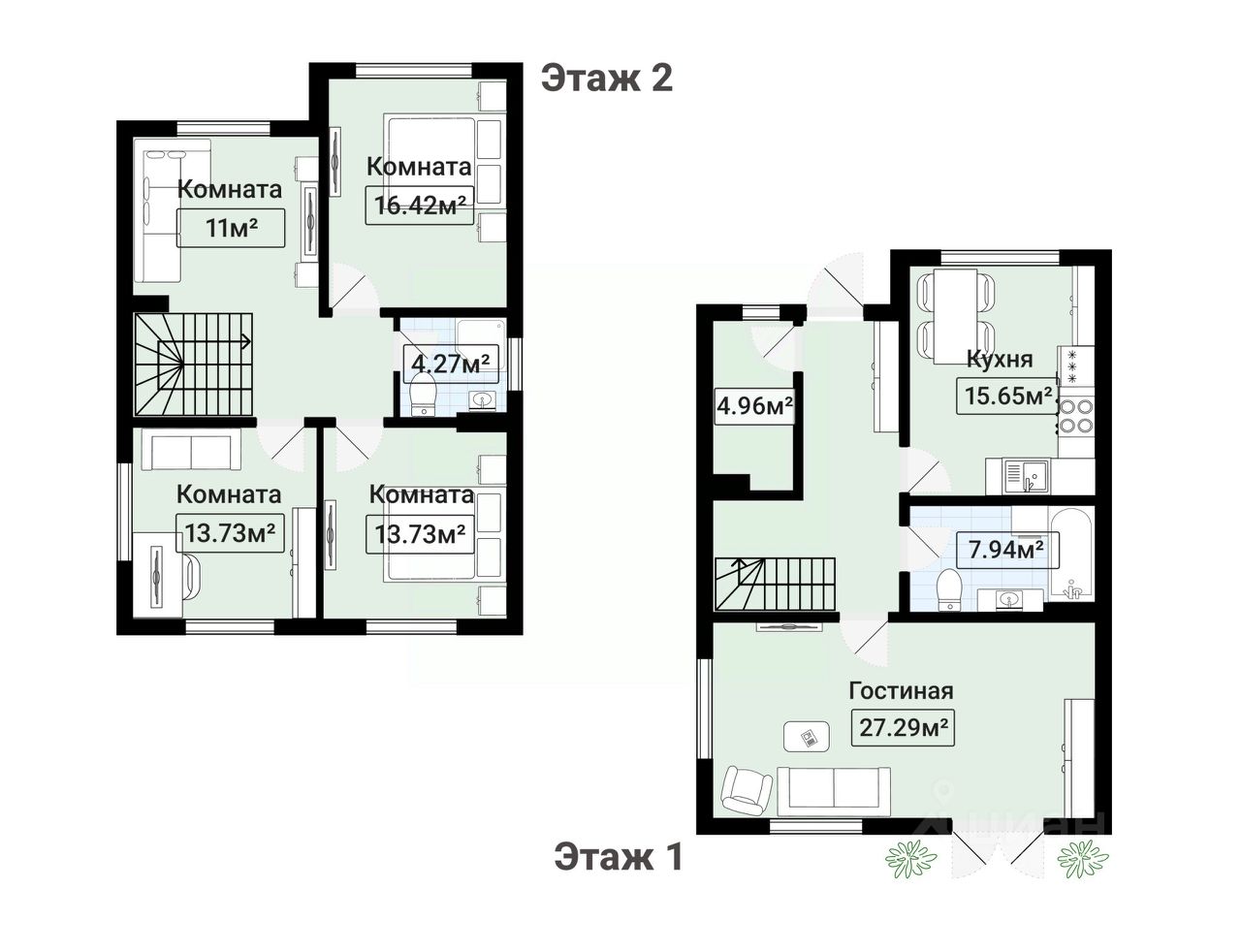 - Планировка: 5 просторных комнат (15,65 м², 29 м², 16,42 м², 11 м², 13,73 м²) + кухня 27,29 м².