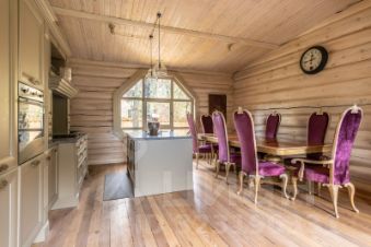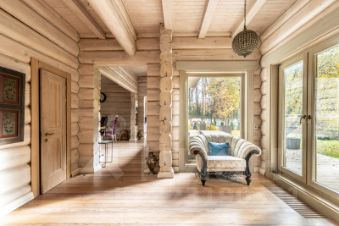 Уникальность данного дома в том, что дом построен из отборного бревна (карельской сосны 25 см), все брёвна шлифовались вручную и покрывались маслом REMMERS и противопожарной пропиткой.