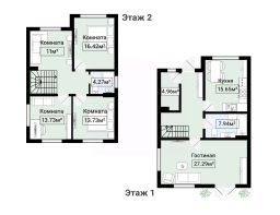 - Планировка: 5 просторных комнат (27 м², 29 м², 16,42 м², 11 м², 13,73 м²) + кухня 15,65 м².