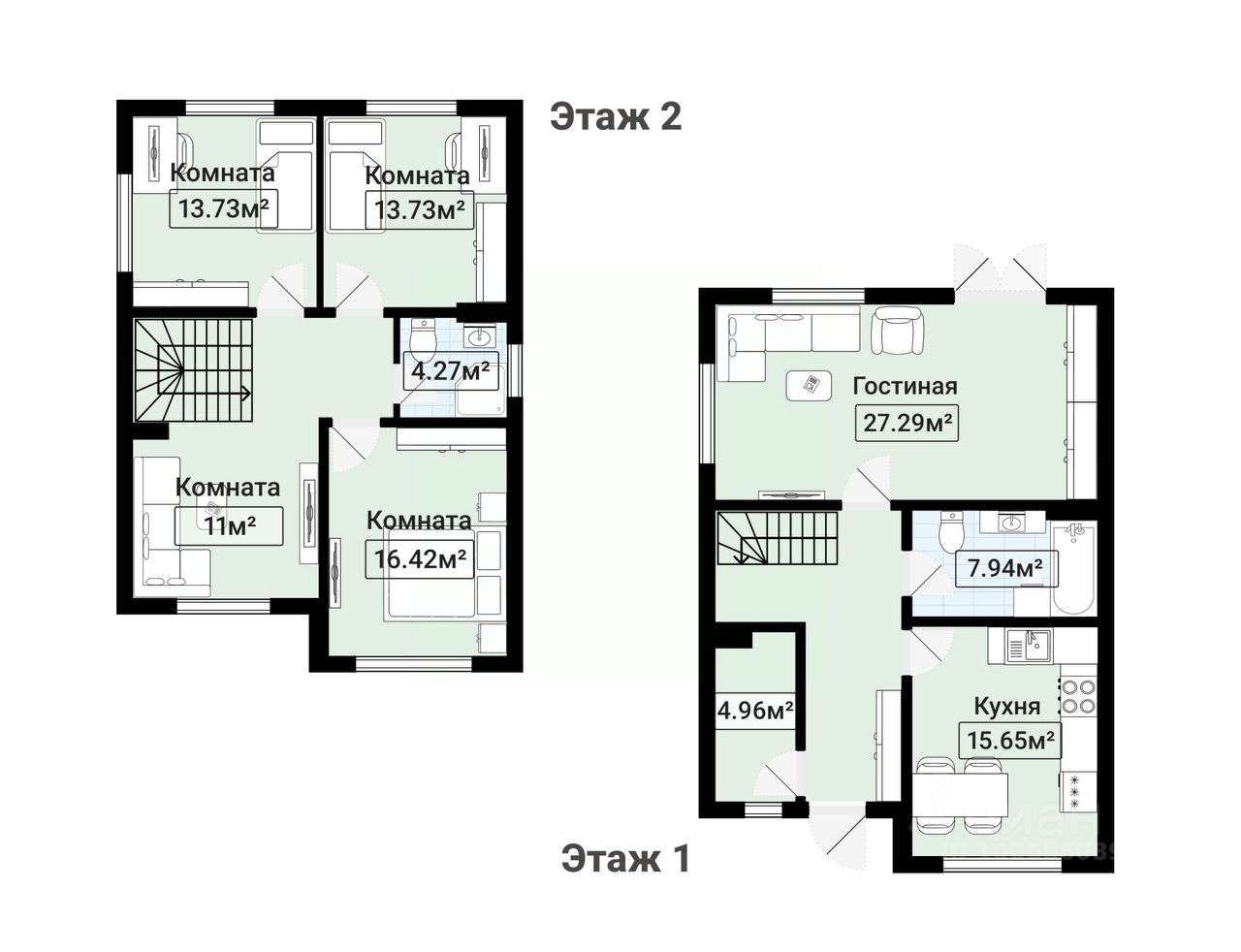 - Планировка: 5 просторных комнат (15,65 м², 29 м², 16,42 м², 11 м², 13,73 м²) + кухня 27,29 м².
